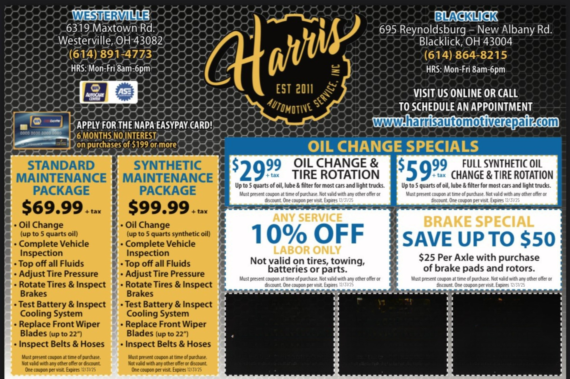 Coupons CHECK OUT OUR SPECIAL OFFERS Download Coupon BLACKLICK LOCATION 695 Reynoldsburg - New Albany Rd.Blacklick, OH 43004 Phone: (614) 864-8215 Hours: Mon-Fri 8am-6pm WESTERVILLE LOCATION 6319 Maxtown Rd.Westerville, OH 43082 Phone: (614) 891-4773 Hours: Mon-Fri 8am-6pm